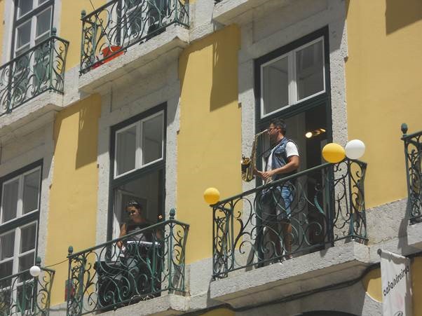These guys were chilling out on one of the rooftops with saxophones and keyboard, complete with yellow and white balloons as they tuned out.