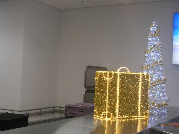 The outside view of the Georgios Karaiskakis Stadium, decorated with illuminated Christmas tree.