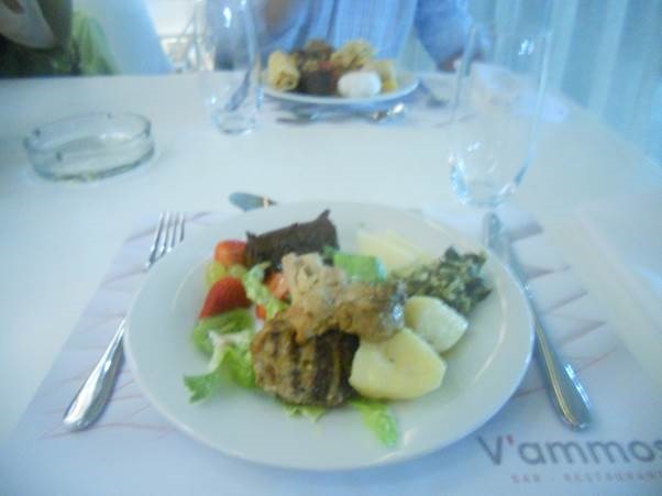 The food we had at V’ammos. Charlie’s plate is opposite mine-sorry again for blurred image!