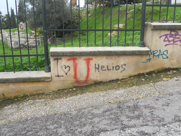 We started walking back the way we came, but this time we passed through some shops and I bought some souvenirs for my friends-magnets, bath soaps, that sort of thing. We also had a quick peak at the Temple of Olympian Zeus, but didn’t go in. And we also passed by Hadrian’s Arch-not the wall up in Scotland, mind you. By the time we got back to the Herodion Hotel it was already late afternoon and the sun was painting the sky this bright, rosy orange pink over the glistening turquoise waves of the Mediterranean seas. To catch a better sight of this we rushed over to the Philopappus Monument, which was located at the very end of the road next to the Acropolis, and was almost like a blue-barred forest of a park-lush trees and grass everywhere, and hardly anyone there. It was mesmerising walking through that jungle to the peak at the top of the mountain, where we got an amazing view of the Acropolis as well as the actual monument there. It was so beautiful I wouldn’t mind staying there myself for a bit. No one would know… 😉