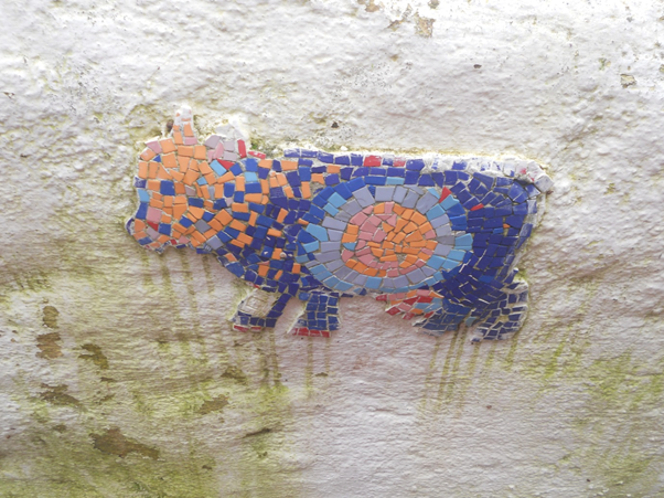 A fun little mosaic bull! On someone’s wall in Anafiotika.