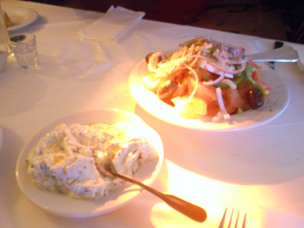 The Greek salad and humus. Sorry about the lighting! I should probably get a new camera, it’s just that it’s…pink.