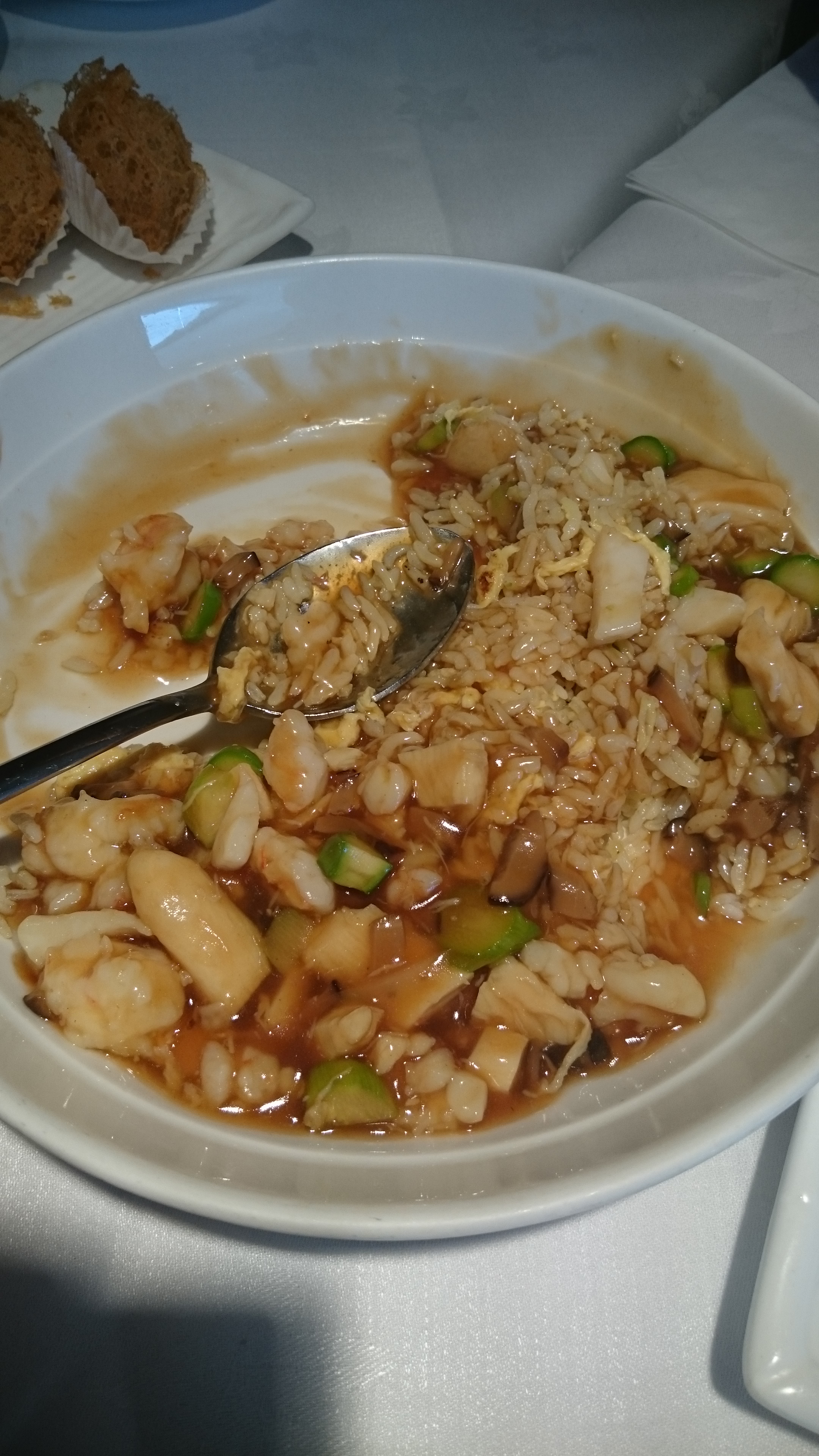 to Royal China Harrow. The restaurant is one of our favourites when seeking Dim Sum satisfaction and on a Sunday lunch time, there was surprisingly no queue to the usually tightly packed restaurant. At every Dim Sum restaurant, there are certain dishes that we will always order, Taro Croquette, Ha Gow (Steamed Prawn Dumplings), Cheung Fun, a form of rice noodle usually containing prawns or some other meat inside, Turnip Cake, Steamed Chicken Feet and Siu Mai (Pork Dumplings). At Royal China Harrow, all the dishes lived up to the expected standard, the Taro Croquette in particular was crispy with the taro clinging on to the flavourful and saucy meat filling, the prawn in the Ha Gow delightfully crunchy and fresh; however one distinguishing similarity in all the dishes was a significant reduction in portion size. In fact, this was a common factor found in some of the main dishes we ordered as well (Fried Noodles with Mixed Vegetables and Fukien Fried Rice, originating from would you know, Fukien in China), the latter of which had visibly shrunken to half its quantity compared to the last time we had gone to Royal China.