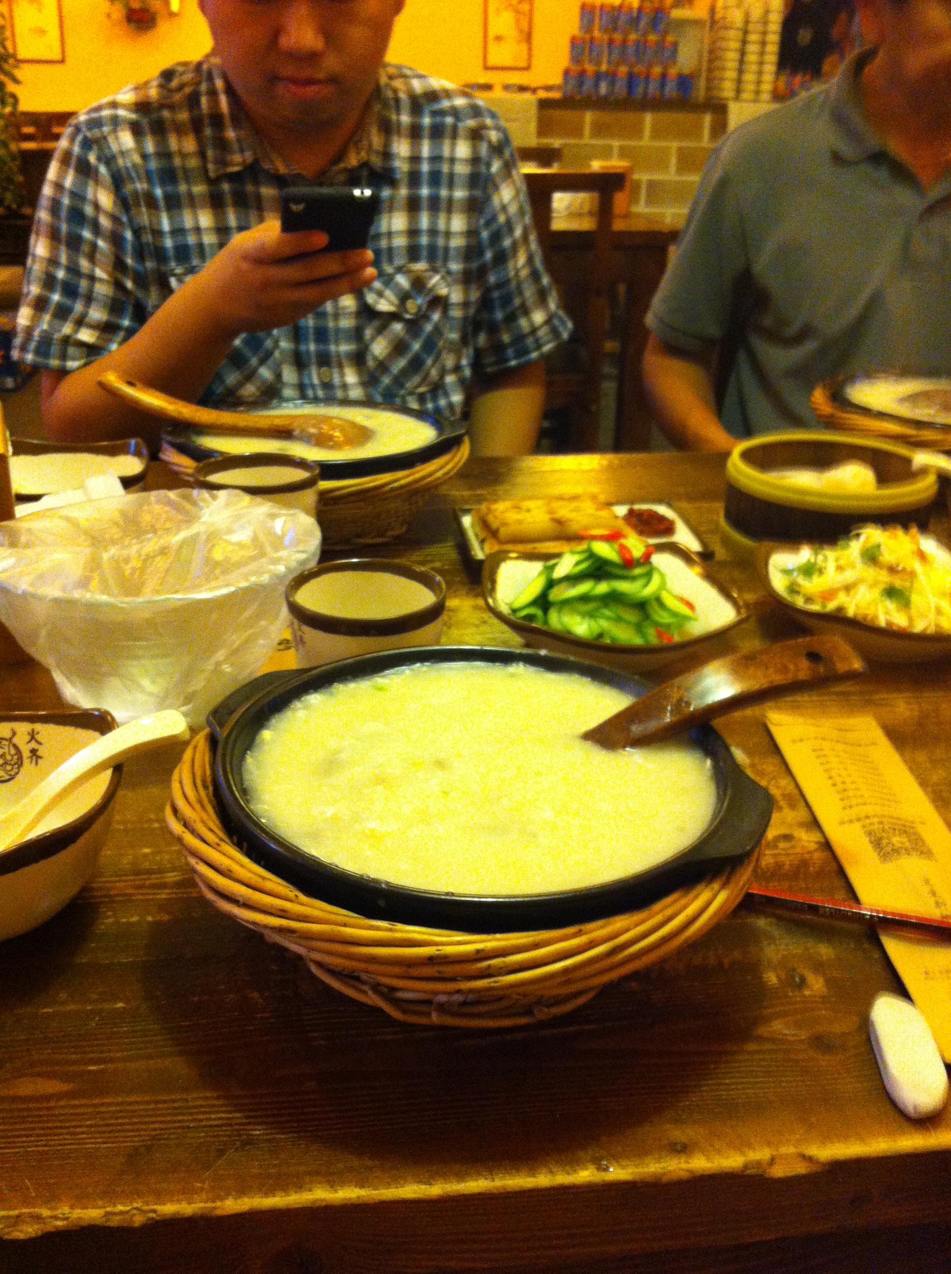 Feeling hungry afterwards, we walked down to Nan Luo Gu Xiang, a famous hutong. Hutong’s are a bit like villages, but more medieval and now more rare since the government has torn down possibly 98% of them all. It’s a great place (except when it rains and you end up being jabbed in the eye with umbrellas and step in all the puddles), perfect for shopping and food alike. We ate at a place called Huo Ji, which serves massive savoury porridge a which are steamy and heartwarming. My LOH had a pigeon and chicken porridge, which was so large it would have probably been fine for five people. They also serve dim sum, and although it’s small, the porridge definitely made up for it. After lunch we went through the main alleys, buying some hand-pressed bamboo postcards and some thermal flasks shaped like penguins? It’s really very touristy.